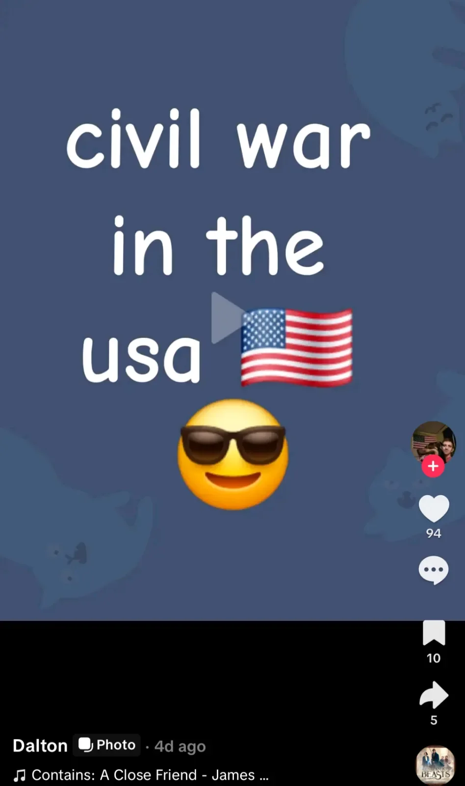 TikTok user dalton1403 posted the following about civil war, then mocked people upset in the comments. He ultimately turned the comments off. Civil war isn’t cool Dalton. He lists his town as Ada, Oklahoma.